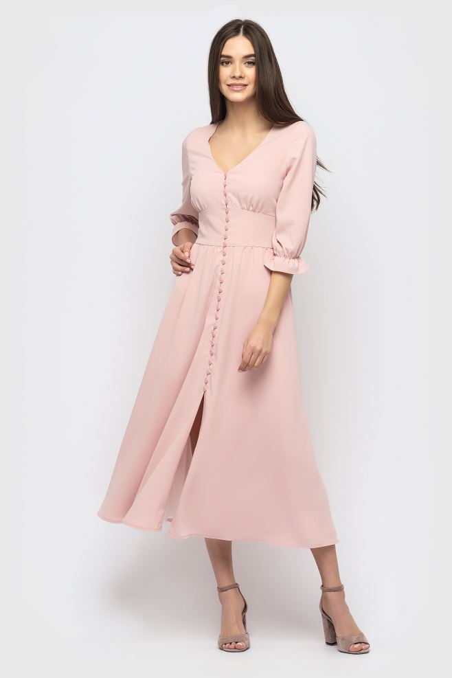 Рожева сукня з гудзиками максі на штапельній підкладці