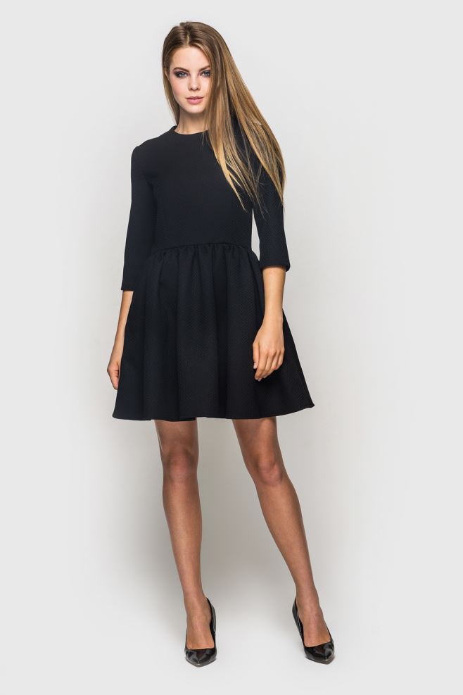 Квіткова сукня з відкритими плечима і рюшею понизу міді