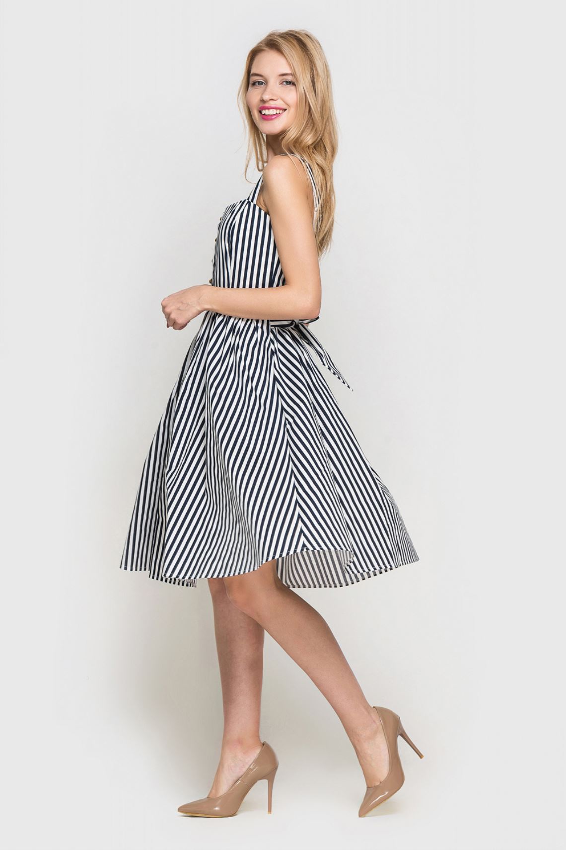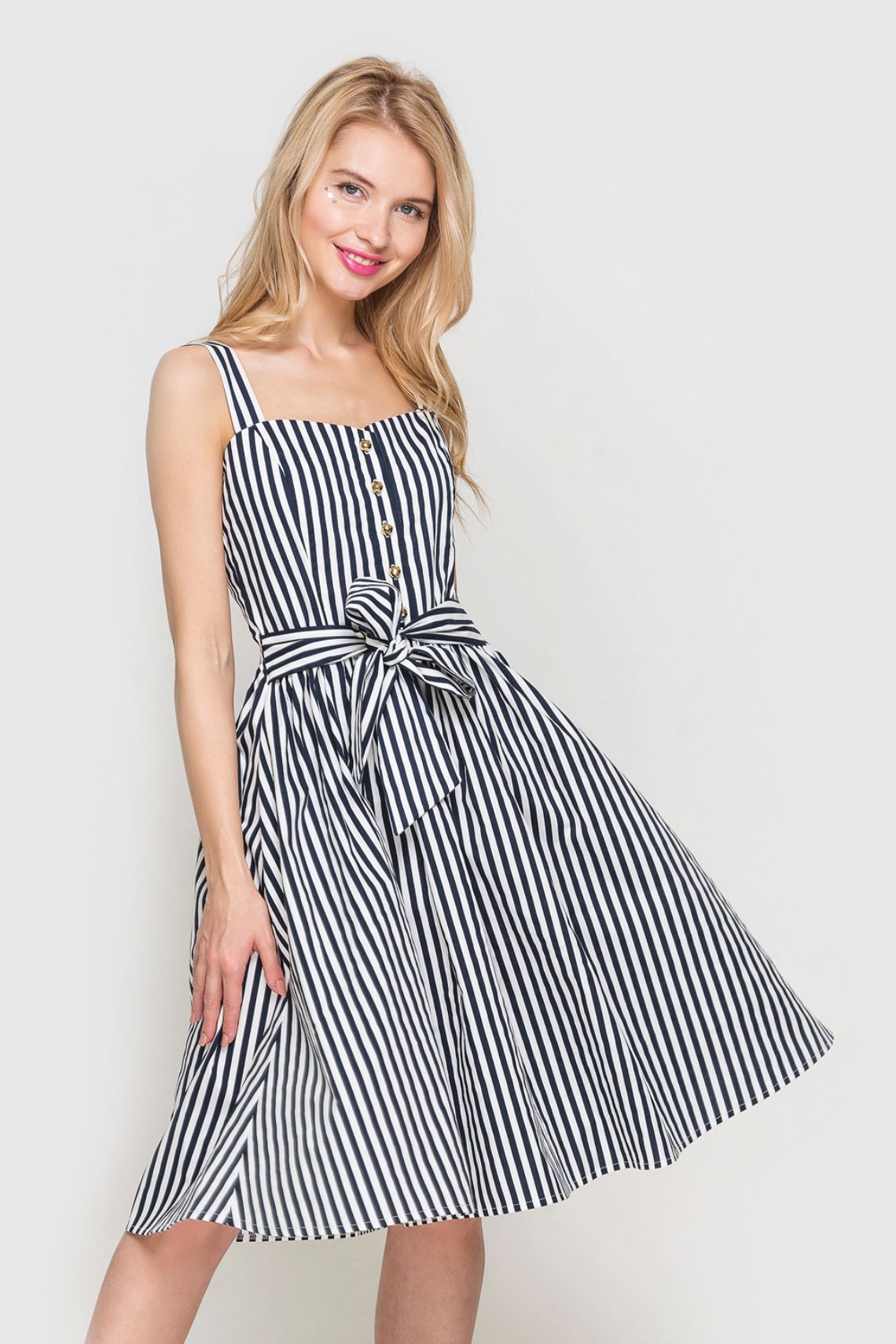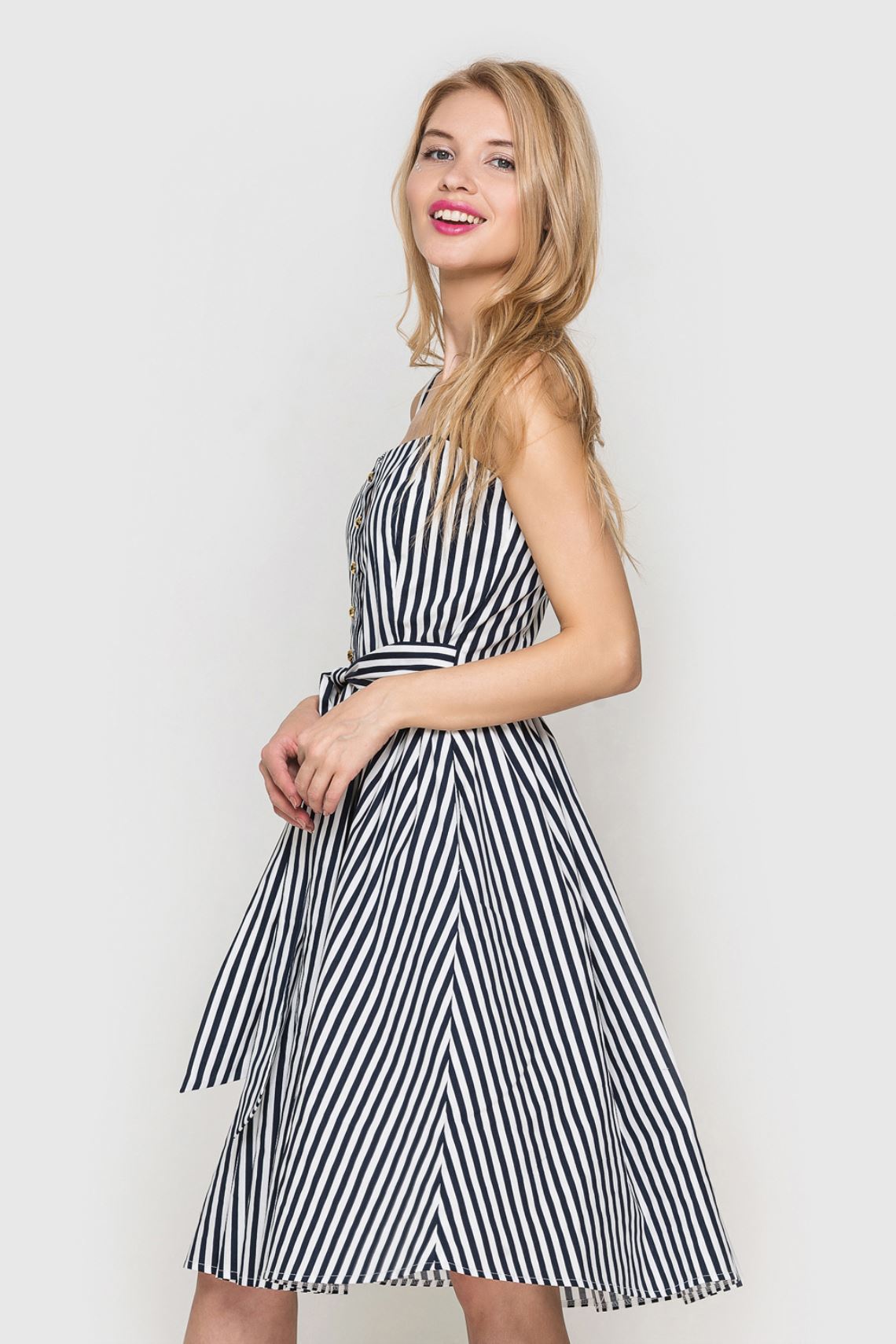 Сукня міді із золотими гудзиками у смужку