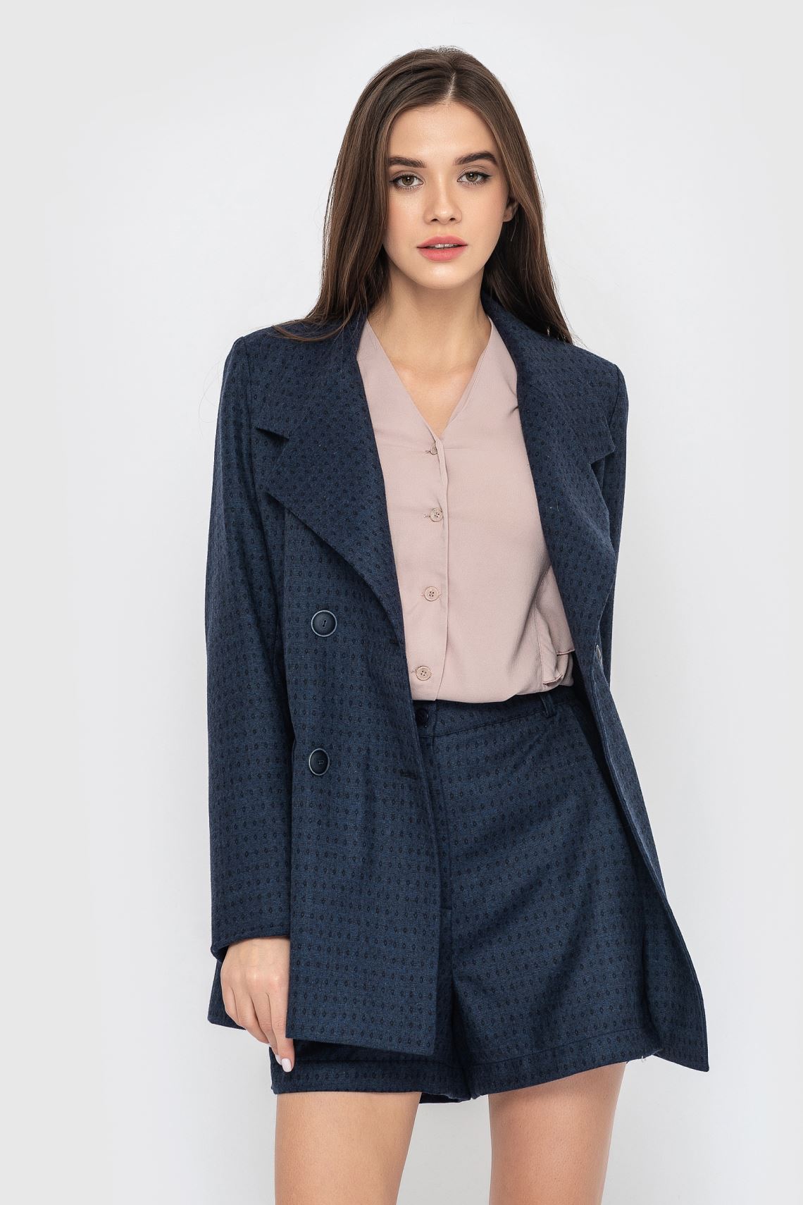 Шорти на високій талії кольору капучино з італійської фактурної костюмної
