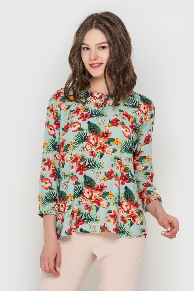 Сорочка в синьо-червоні квіти з італійської бавовни